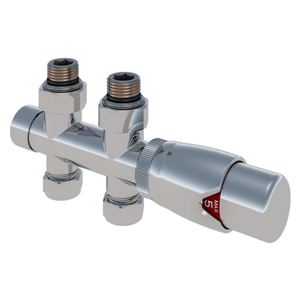 Straight Twin inlet Thermostatic Radiator Valve 15mm Chrome