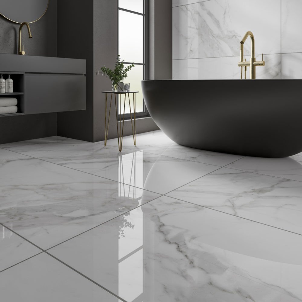 Make a statement with Bethanie! Crafted to perfection, each tile encapsulates the allure of natural marble, elevating your space into a grandiose realm. The flawless, mirror-like finish reflects light with a captivating brilliance, adding depth and luminosity to any room.