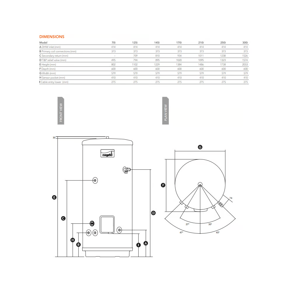this Megaflo Eco indirect unvented cylinder delivers excellent hot water performance even at low pressures, with no shower pumps or tanks required. Capable of delivering up to 76 litres of hot water every minute (3 bar pressure), it heats as much water as possible in the shortest amount of time. This makes it perfect for quick baths and powerful showers.